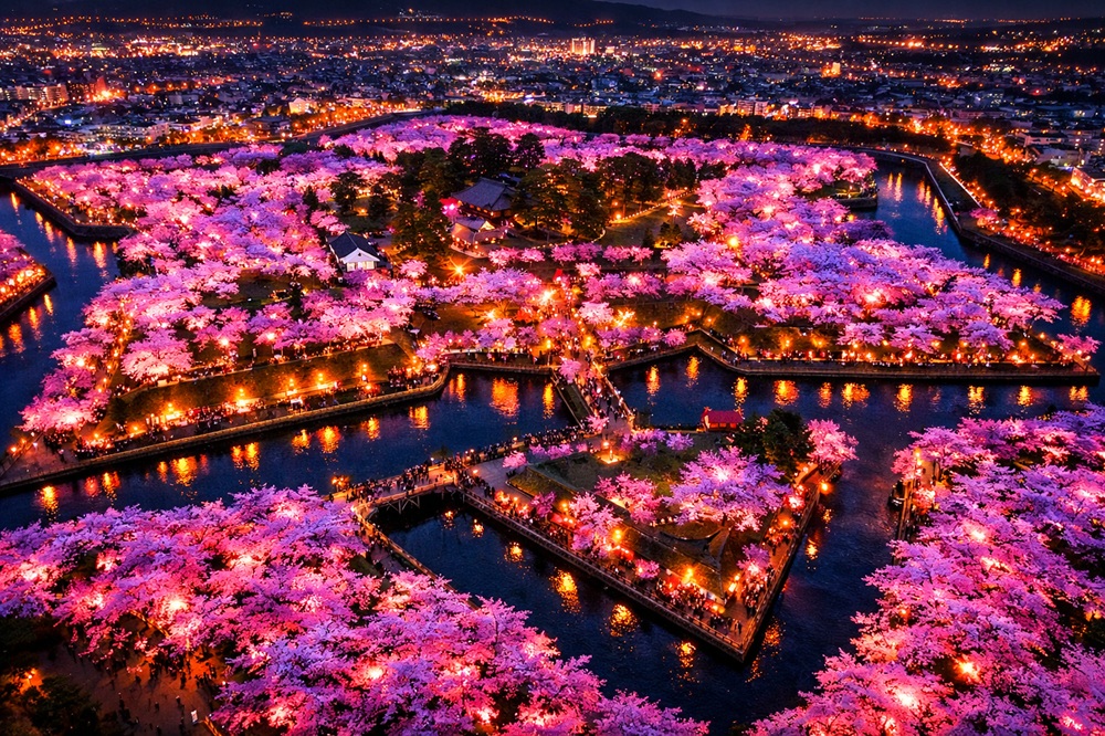 星形の城郭を囲むように咲く桜はとても美しく、毎年多くの人が訪れる人気のお花見スポットになっています。