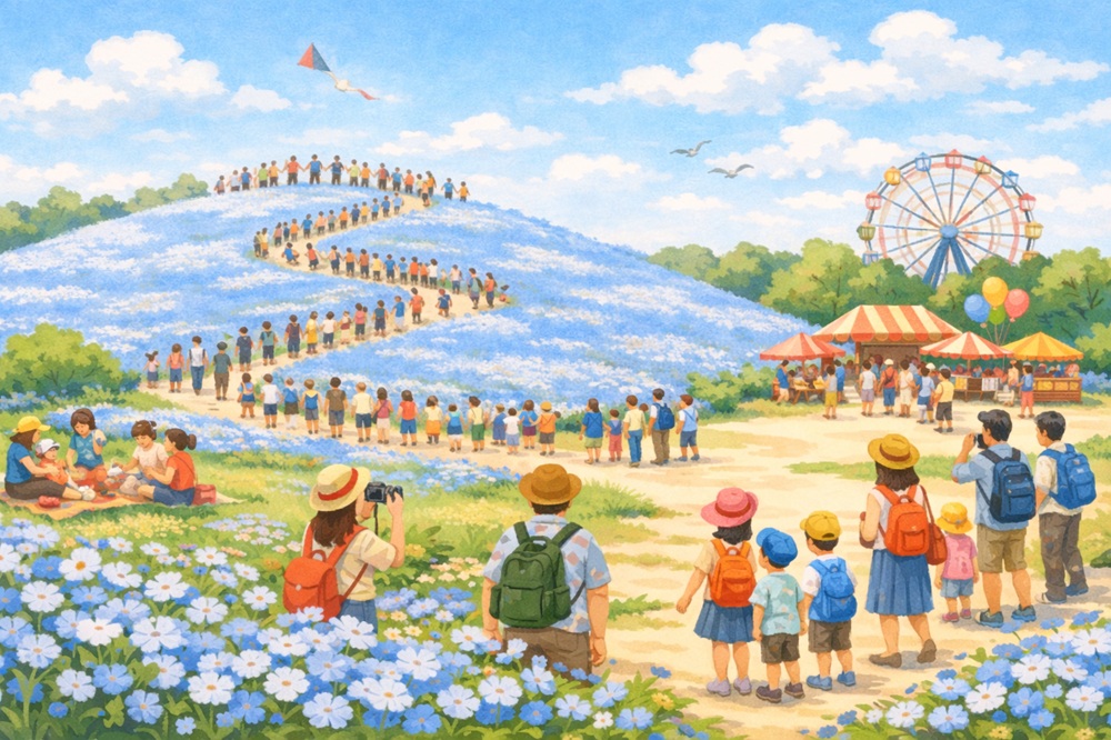 2026年は「GWだから混む」というだけでなく、ネモフィラの見頃終盤と重なる日があるため、日によって体感差が大きくなりそうです。