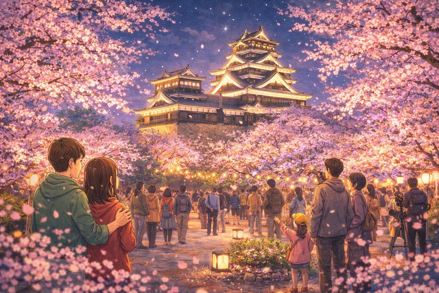 熊本の春を語るうえで外せないのが、名城と桜が織りなす幻想的な夜景です。